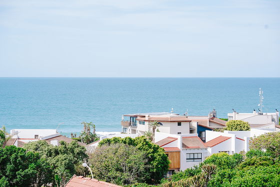 The house is designed for families or groups travelling together and offers several living areas, balconies with sea views and a large enclosed garden. The property is fully fenced, making it suitable for guests travelling with dogs while still being within walking distance of Jeffreys Bay’s surf spots and local shops.