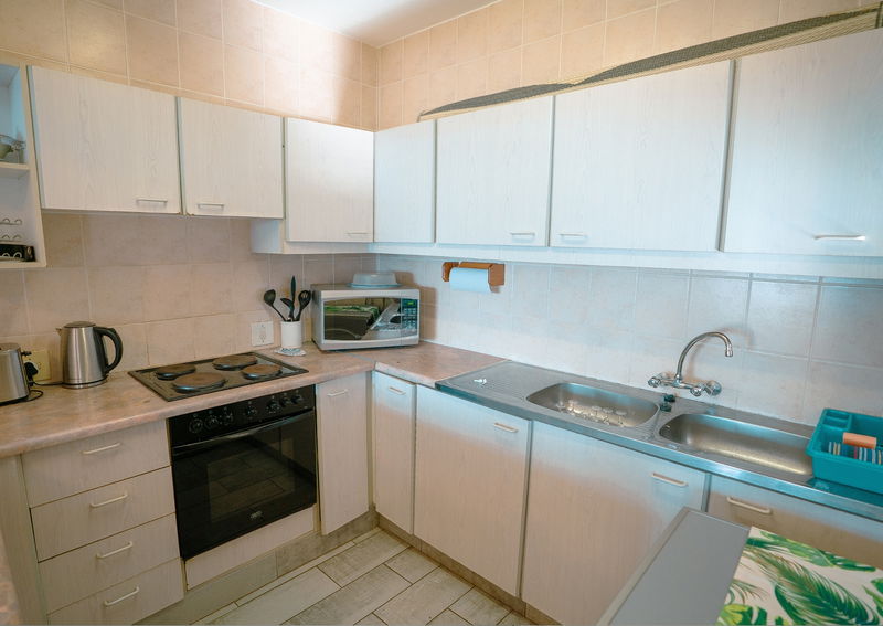 - Kitchen: Fully equipped (stove, oven, microwave, fridge-freezer, washing machine, cutlery, crockery)