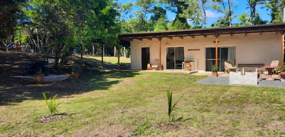 Dogs can move freely within the fenced garden. The space allows for off-leash time under supervision. With prior arrangement, dogs may be left unattended at the bungalow. There is space for one large dog to sleep inside, while smaller dogs are easily accommodated indoors.