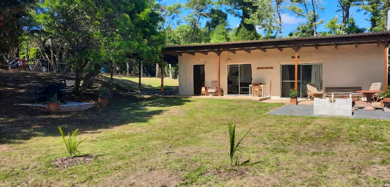 The bungalow opens onto a covered patio with braai facilities. The garden is large, grassy, and shaded by trees. The property is fully enclosed with a 6-foot fence, including an electric section on one boundary, making it suitable for dogs. There are no resident dogs on the property.