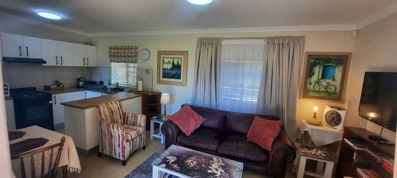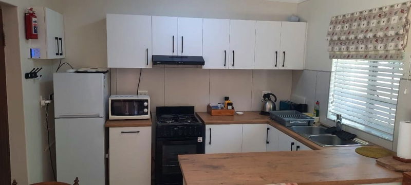 The bungalow consists of a single bedroom with a queen-size bed and an en-suite bathroom. The open-plan living space includes a fully equipped kitchen, a small dining table, and a lounge area. There is a couch in the lounge that can accommodate a small child if needed, but the unit is best suited to two adults. Linen and bath towels are provided. Free Wi-Fi is available.