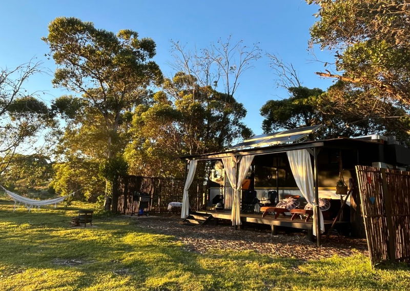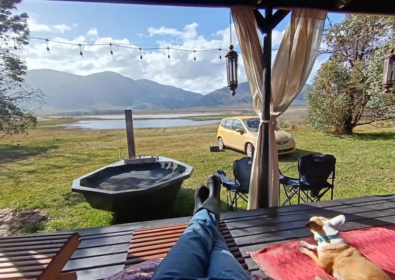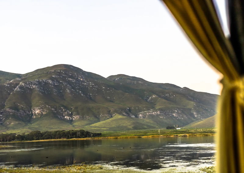 The Black Eagle Bus offers unique pet-friendly accommodation in Stanford, set on a 160-hectare farm surrounded by wetlands and fynbos. Located along the Klein River, this converted mobile home provides a peaceful nature escape for couples and small families, with views across the lake and mountains.