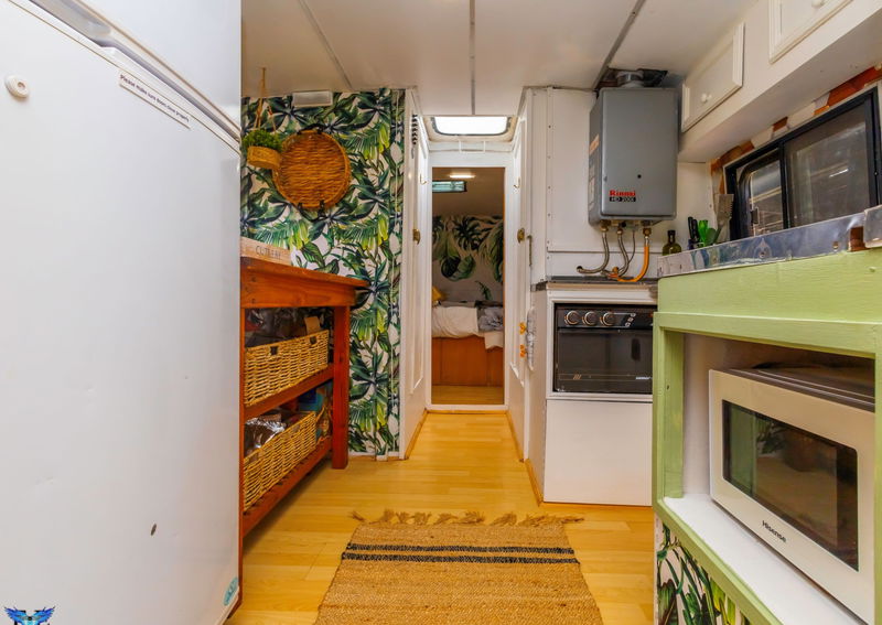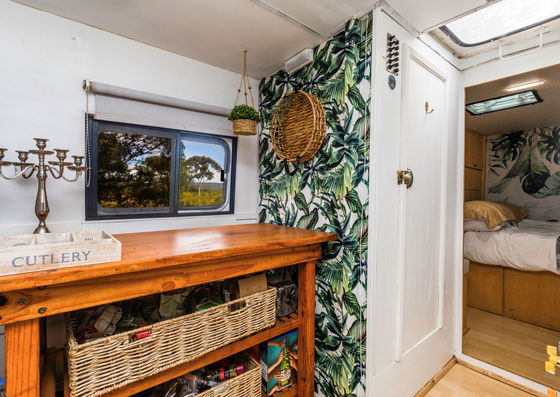 The Black Eagle Bus is a restored mobile home offering self-catering accommodation for two adults and one child. Inside is a double bed, sofa bed, and compact kitchen with all essentials. The bathroom includes a shower, toilet, and hot water. Linen, towels, and basic supplies are provided.