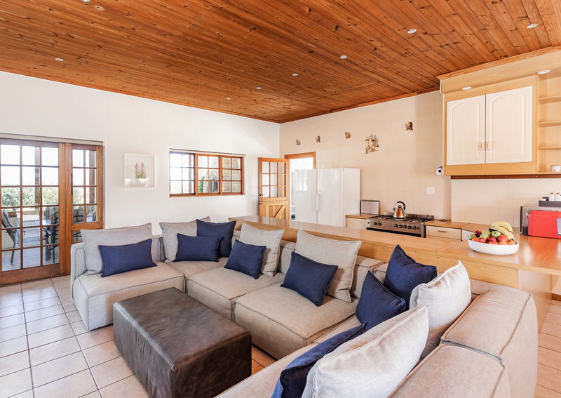 Casa d’Italo opens directly into the Klein River Private Nature Reserve, with unfenced access to the fynbos. The property shares space with one other cottage, set about 15 metres away, each with its own driveway and private garden area. Guests have use of an expansive lawn and off-lead walking access to fynbos trails.