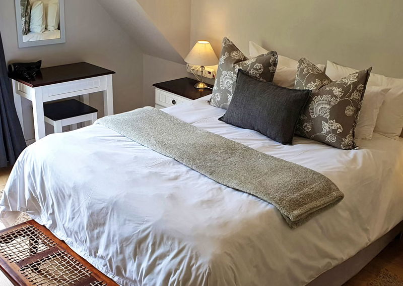 Well-behaved dogs are welcome, with a maximum of three dogs. A pet levy of R80 per pet per night applies (2025 rate). The lodge is fully fenced down to the dam, making it suitable for dogs that need a secure outdoor area. Dogs must not be left unattended outside the fenced area, must not bark excessively, and are not allowed on furniture or bedding. Guests must bring their own dog bedding and clean up after pets. Livestock is present on the farm, and dogs must be kept on lead outside the fenced garden.