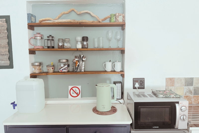 • Kitchen: Tea and coffee station with bar fridge and microwave