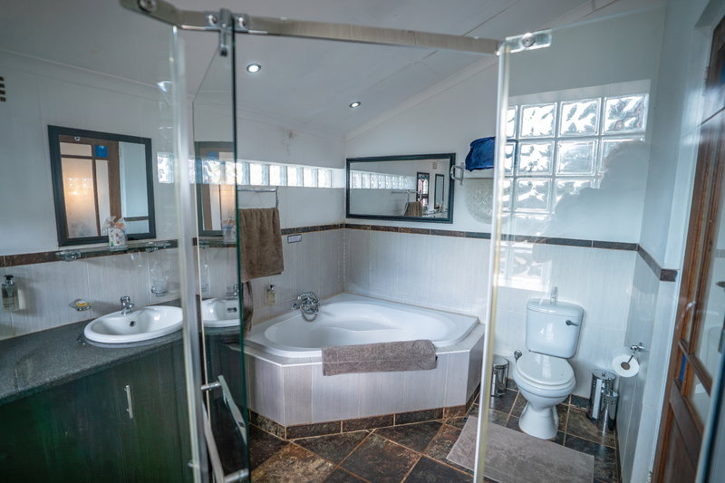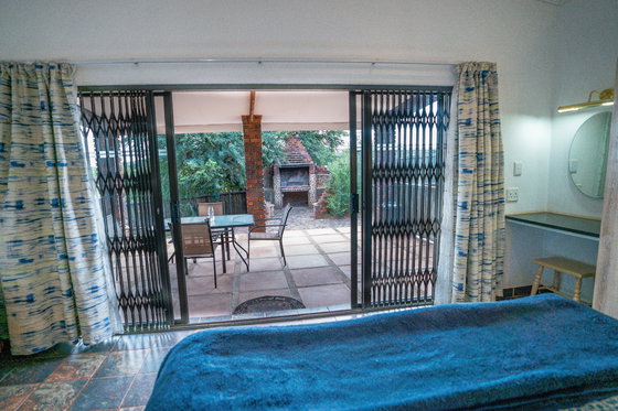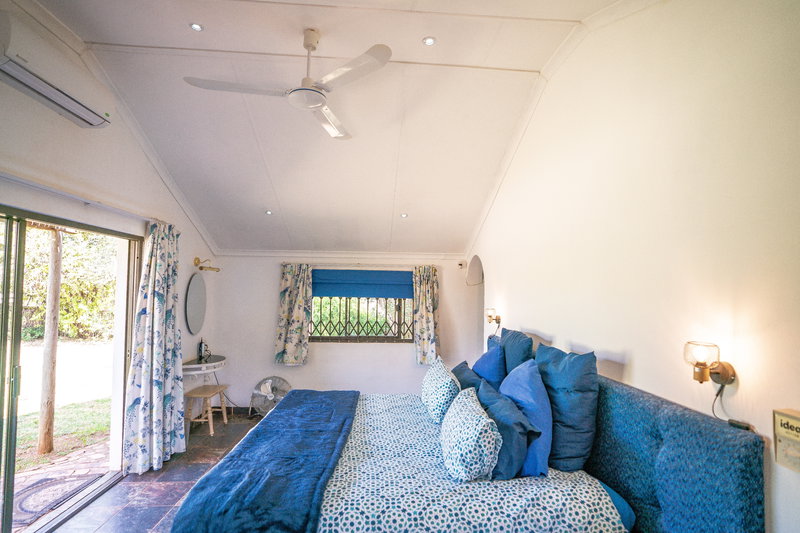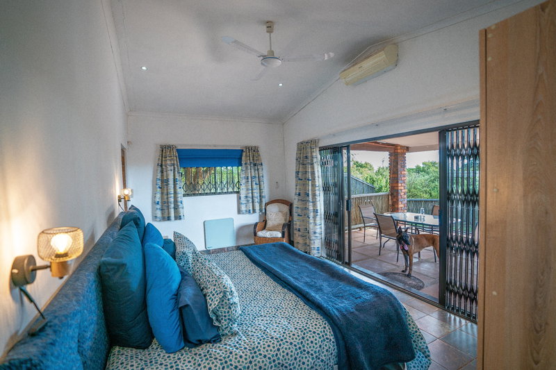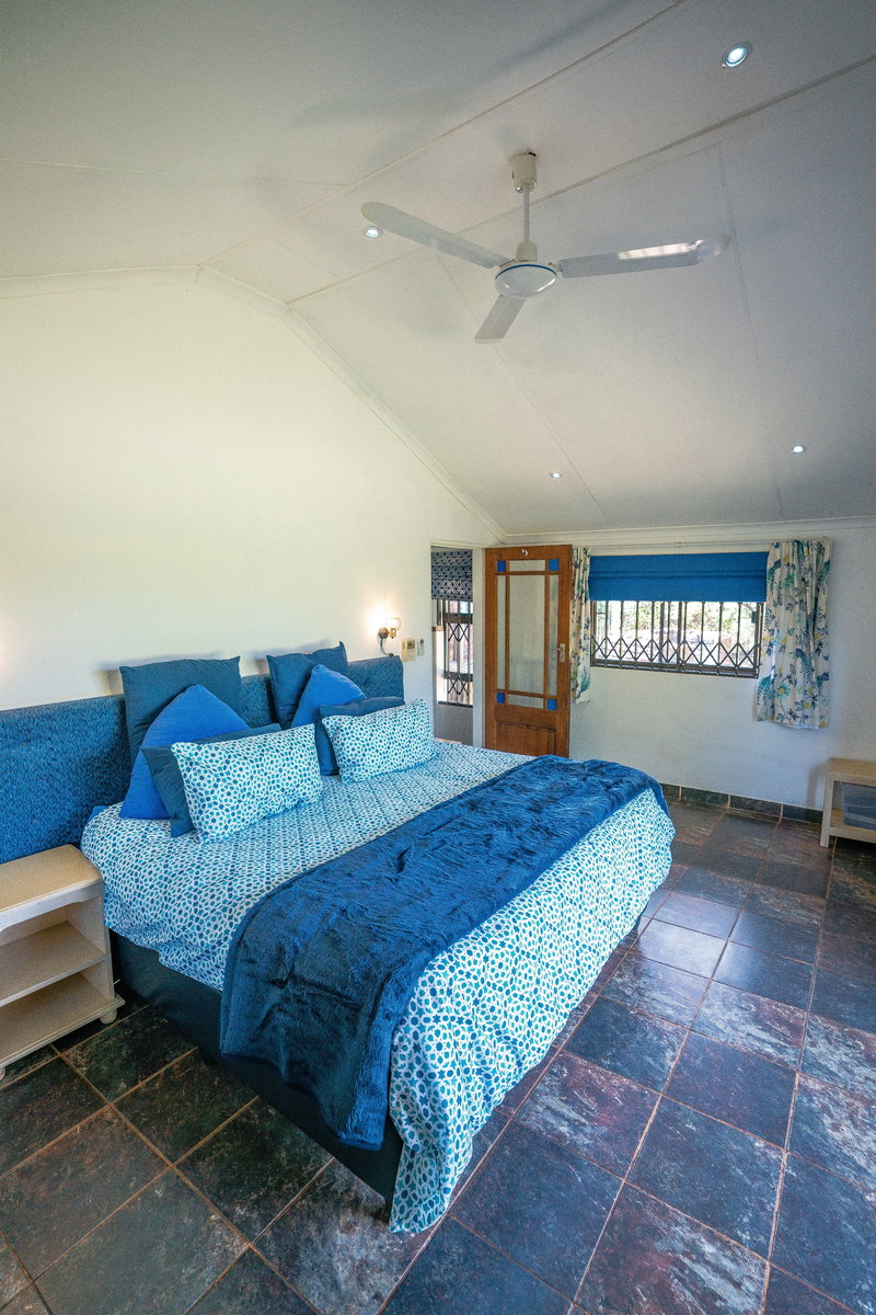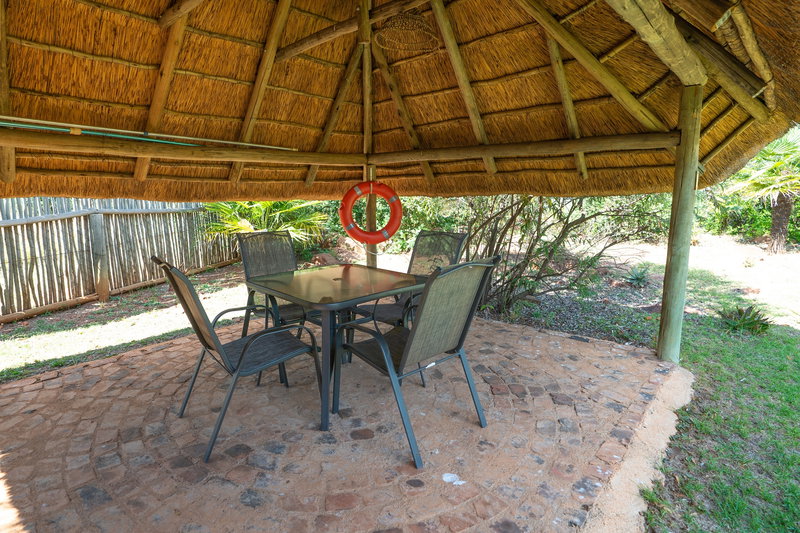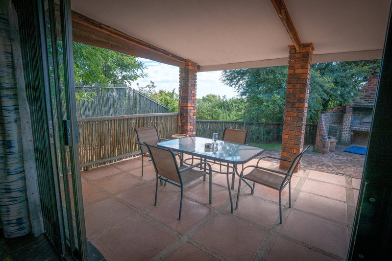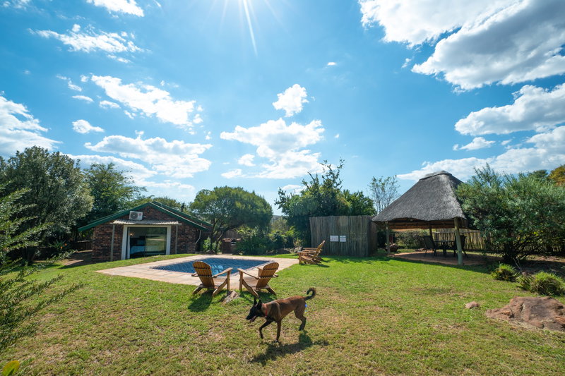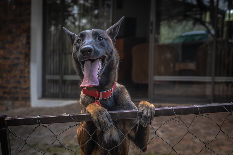 The house offers a large, fully fenced garden (±1 acre), giving dogs significantly more space than a standard enclosed yard, while the surrounding property provides open bushveld terrain and water access.