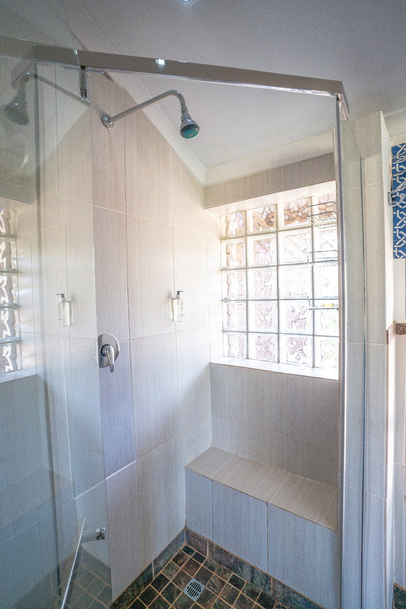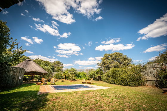 There is a large private swimming pool, an outdoor shower, and two separate braai areas on either side of the house, allowing for flexible outdoor use.
