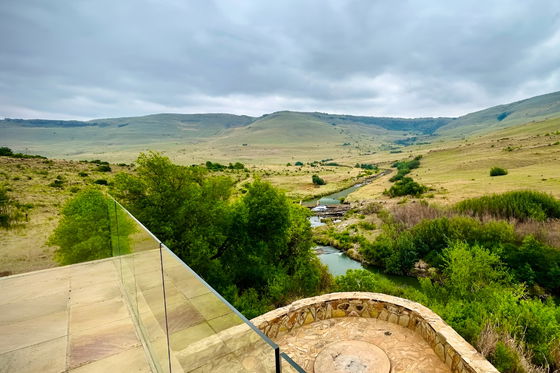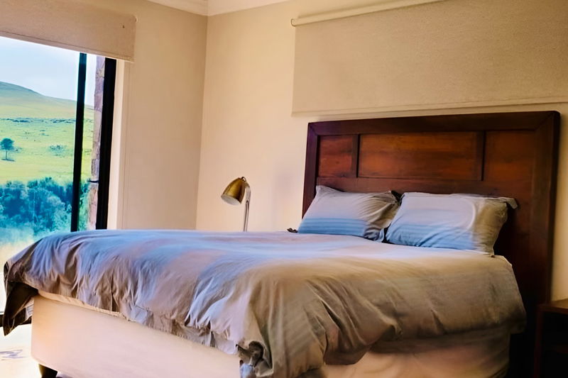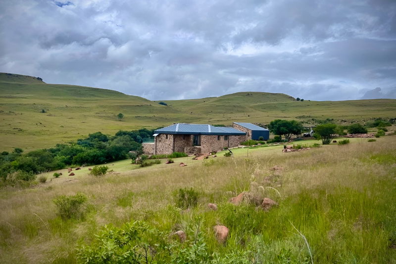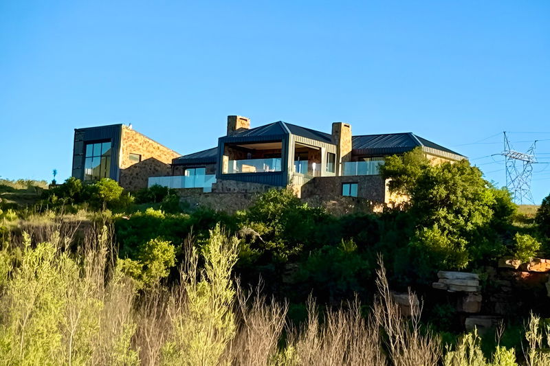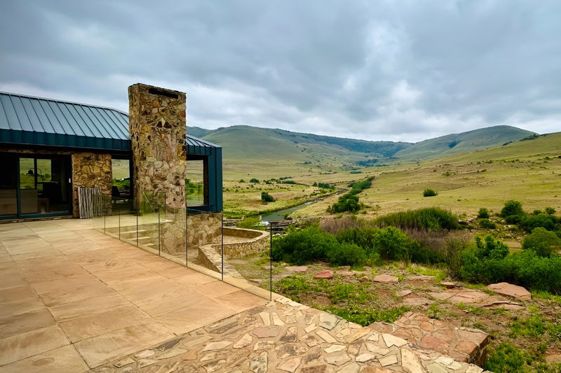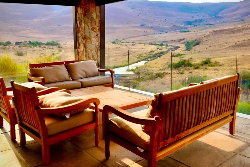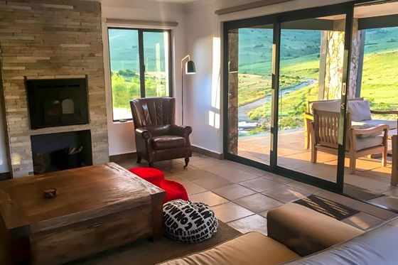 Riverbend on Komati is positioned on top of a gorge with wide views over the Komati River and the northern Drakensberg. The house has large balconies and terraces that are secure for dogs, although the property is not individually fenced. Outdoor areas include a covered patio with braai facilities and a fire pit overlooking the river.