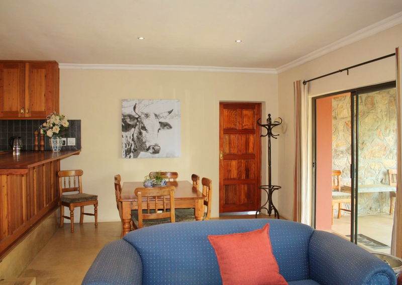 With 3 bedrooms, each boasting its own en-suite bathroom, The Diary Cottage comfortably sleeps 6 guests. Fully furnished with linen and towels provided, your comfort is their priority. Once a working dairy, the cottage has been lovingly renovated and modernized, quickly becoming a favorite among pet-friendly travelers. Enjoy the convenience of a fully equipped kitchen, DSTV, fireplace, fire pit, and 2 spacious patios that invite you to savor the best of farm life.