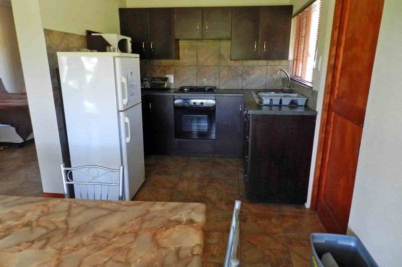 The Nest has one bedroom with an en suite bathroom fitted with both a bath and shower. Guests can choose between a double bed for couples or twin setup for two singles. The open-plan living space includes a lounge, dining table, and kitchen equipped for self-catering. An indoor fireplace provides warmth in winter, while the lounge offers a sleeper couch for up to 2 children. DSTV is available if guests bring their own card and decoder.