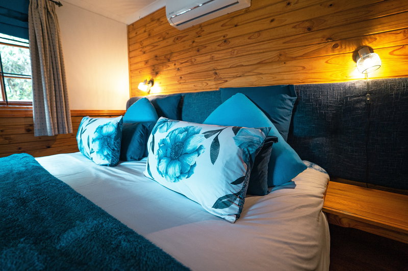 The cottage accommodates 2 guests and includes a king-size bedroom, a full bathroom, and an outdoor shower. Guests also have access to a private fenced garden with a splash pool, along with shared farm features including off-lead walking trails, dog-friendly water spots, and a communal pool.